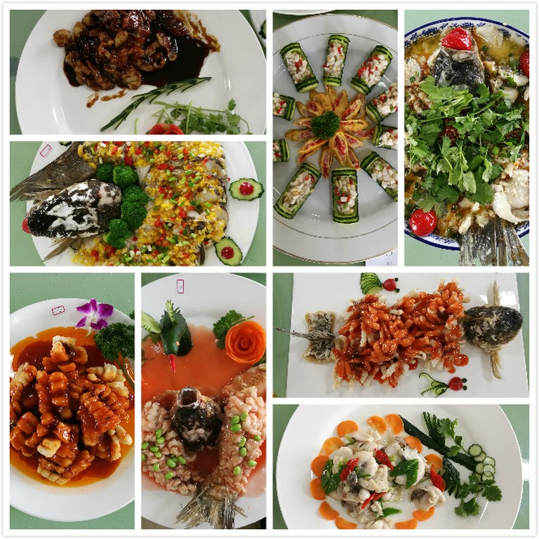 在评委们品鉴第一道菜时,参赛选手已经拎着自己处理好的鱼,开始了又一轮激烈的角逐。在自选菜式中,各位选手“八仙过海,各显神通”,有的以菜品的外在形象取胜,精雕细琢后的食材让人挪不开眼球;有的以菜品的内在口感为先,朴实无华的外表下弥漫出让人欲罢不能的香气。每道菜上桌,都让评委及工作人员赞不绝口。