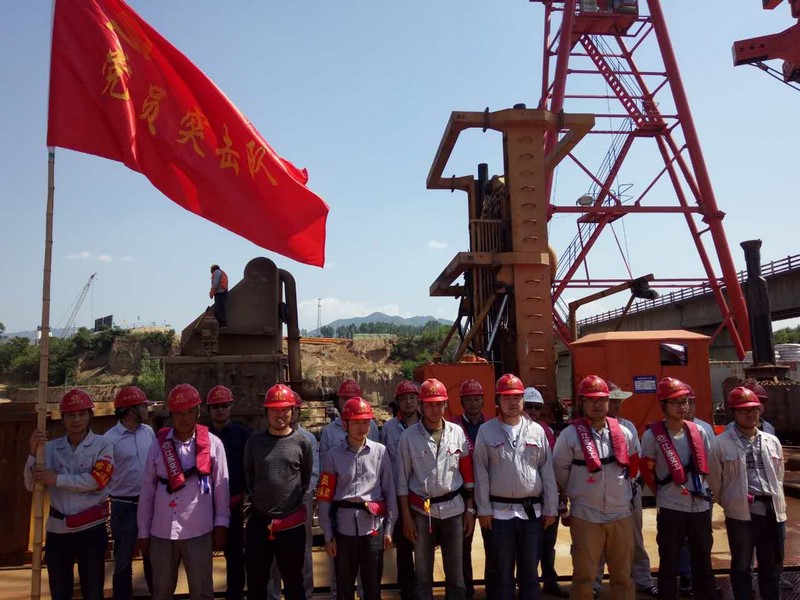 黄河特大桥项目是集团公司的重点工程,近日该项目P15#平台开始永久性钢护筒试桩施工,由于地层复杂,桩基推进非常困难。为给参建人员鼓劲加油,集团公司党委决定在项目施工现场举行党员突击队授旗仪式,以共产党人的先进模范作用,带动全体参见人员为全面推进项目施工加油拼搏,奉献力量。