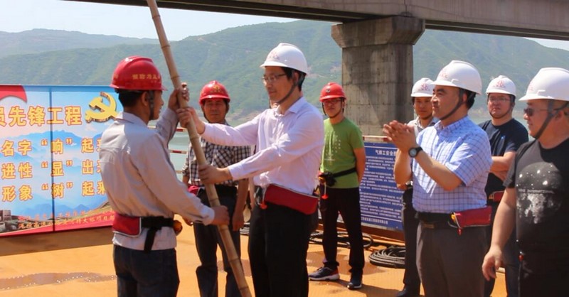 授旗仪式上,张晓宇董事长强调黄河特大桥项目开展“我是党员看我的”活动,要突显共产党员在项目施工过程中的带头作用,让项目员工看到党员的勇于担当、无私奉献、热情服务、清正廉洁的工作态度。更要带动全体参建人员发扬不怕吃苦、勇担重任的优良传统,攻坚克难,奋勇先前,努力掀起大干高潮。授予党员突击队大旗目的是在项目建设过程中让共产党员的名字在项目响起来,叫共产党员先进性显出来,把共产党员的形象树起来。在共产党员的带动下,通过全体参见人员的共同努力向地方人民交一份完美的答卷,让江苏交工的旗帜在这里屹立起来。