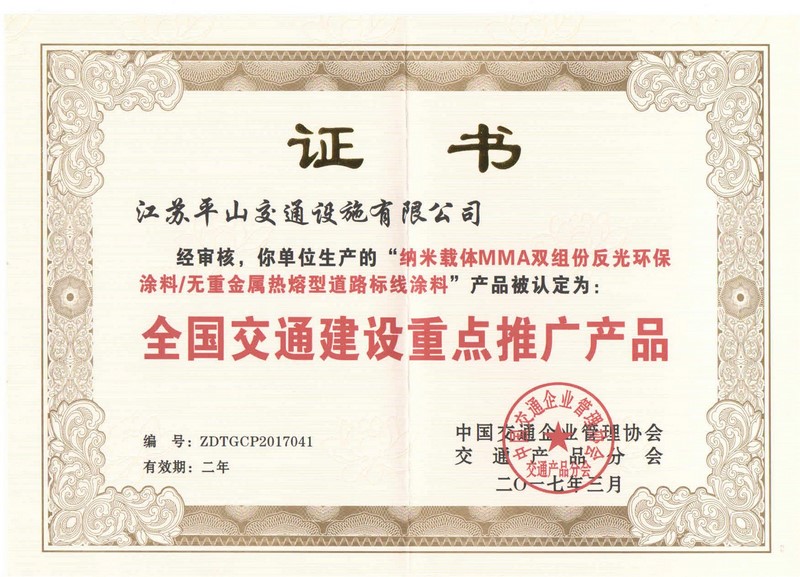 由行内领军人物、专业团队精心打造的中国交通商城,于今年6月12日在北京正式上线运营,来自全国交通工程行业100多家单位以及金融机构的代表共计200多人,共同见证了交通工程行业创新营销模式的开业庆典。江苏平山交通设施有限公司凭借在行业内的良好信誉,与中国交通商城达成全面战略合作伙伴关系,成为首批入驻商城的交安企业,也是首家入驻商城的桥梁伸缩缝、桥梁支座供应商。同时公司生产的“纳米载体MMA双组份反光环保涂料/无重金属热熔型道路标线涂料”和“PSF系列模数式/单元式多向变位/减震降噪式公路桥梁伸缩缝”产品最近也被中国交通企业管理协会认定为“全国交通建设重点推广产品。” (杨萍)