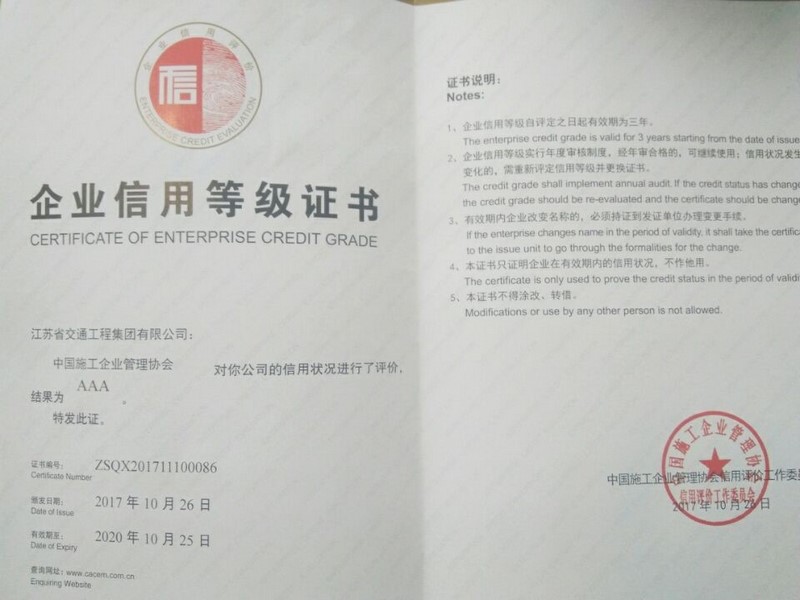 11月23日,由中国施工企业管理协会组织的“2017年工程建设诚信企业推介大会”在京召开。集团公司以卓越的生产经营业绩、健全的管理体系以及良好守约诚信的口碑,顺利通过2017年度工程建设企业信用评价AAA级审核,荣获了该协会授予的“企业信用等级证书”。