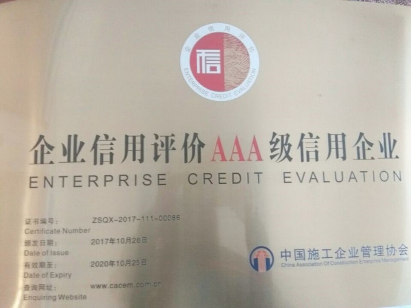 AAA级为施工企业信用评级中的最高级别,是国内外市场准入、招标投标、评选评优等活动的重要参考依据。该项评比工作三年一次,这也是继2011-2014年后,集团公司再次荣获评项等级荣誉。 (黄 琨)