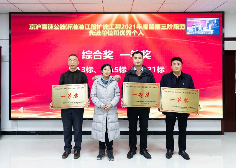 1月17日,又一喜讯传来,京沪高速公路沂淮淮江段扩建工程2021年度暨第三阶段劳动竞赛总结表彰大会召开,京沪扩建沭阳3标、淮安21标斩获多项荣誉,共计获得奖金总额近2000万元,沭阳3标项目部获得奖金比例位居全线第一。