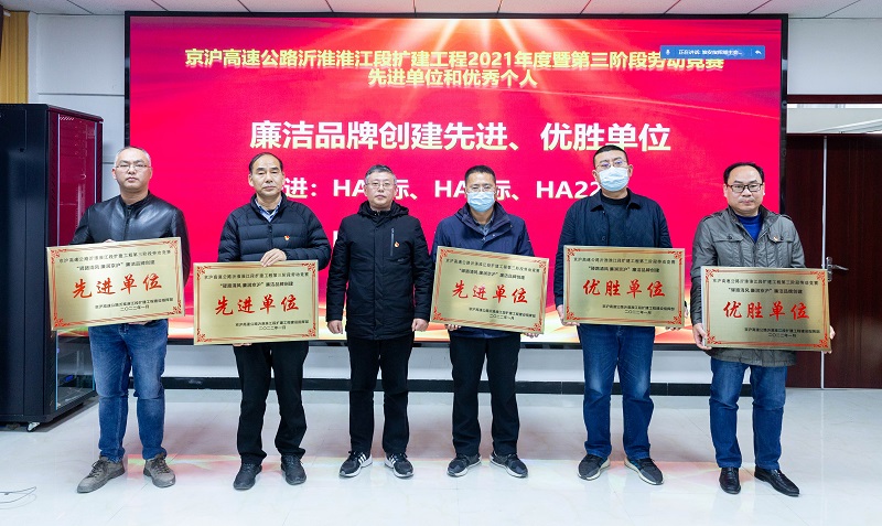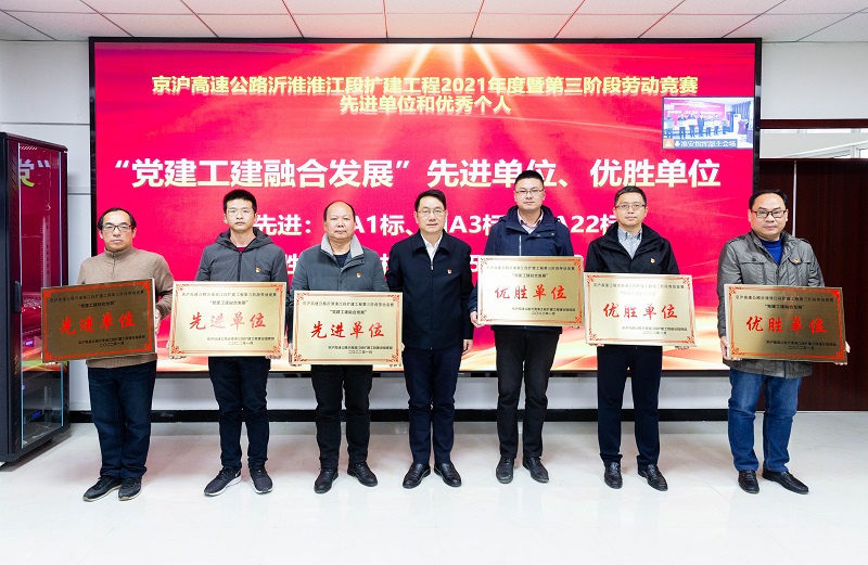 本次表彰大会主要是总结京沪高速公路沂淮淮江扩建工程第三阶段劳动竞赛活动成果,表彰在竞赛活动中涌现出的先进单位和优秀个人。其中,京沪扩建沭阳3标项目部获得劳动竞赛奖金为702万元,京沪扩建淮安21标项目部获得劳动竞赛奖金为1281万元。据了解,劳动竞赛奖励基金总额由施工单位和指挥部各承担50%,其中施工单位承担的50%部分在每月计量中扣留,指挥部承担的50%在“清单暂列金额”中列支。表彰会上,京沪扩建沭阳3标项目部、京沪扩建淮安21标项目部均获“综合奖”一等奖,京沪扩建淮安21标项目部获“党建工建融合发展”优胜单位、廉洁品牌创建优胜单位;京沪扩建沭阳3标项目部获“党建工建融合发展”先进单位、廉洁品牌创建先进单位。同时还有27名职工分别获得不同条线的个人荣誉。