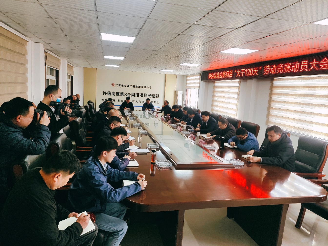 3月8日上午,集团公司许信高速公路项目 “大干120天”劳动竞赛动员大会在8标项目部举行,来自许信高速公路4标和8标项目部的相关负责人、管理人员和施工队伍代表齐聚一堂,共誓将加速推进许信高速公路项目建设,确保按期实现节点工期目标。集团公司副总裁、总工程师、项目指挥长巫亚明,集团公司党委副书记、工会主席艾旭出席竞赛动员仪式。