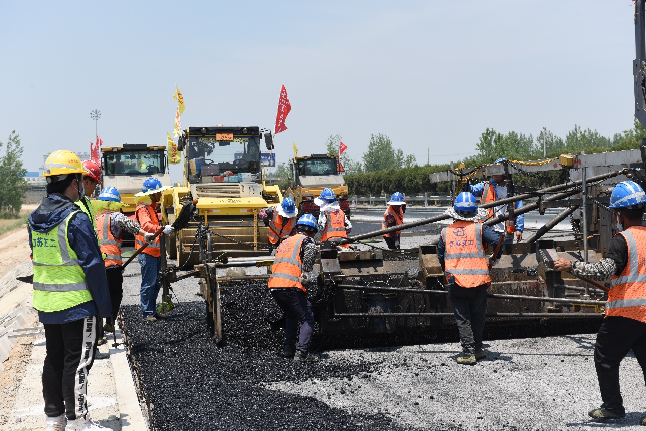 图为沥青摊铺施工现场