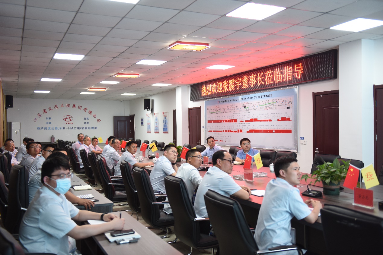 5月23日,集团公司董事长张震宇一行来到淮安,实地考察了开通公司以及由该公司负责实施的京沪高速21标施工项目。在与项目部管理层以及开通公司高管层进行分别座谈时,张震宇勉励广大一线员工要勤勉实干,高效推进项目建设,动员开通公司高管层凝心聚力,加大改革力度,提升发展质效。
