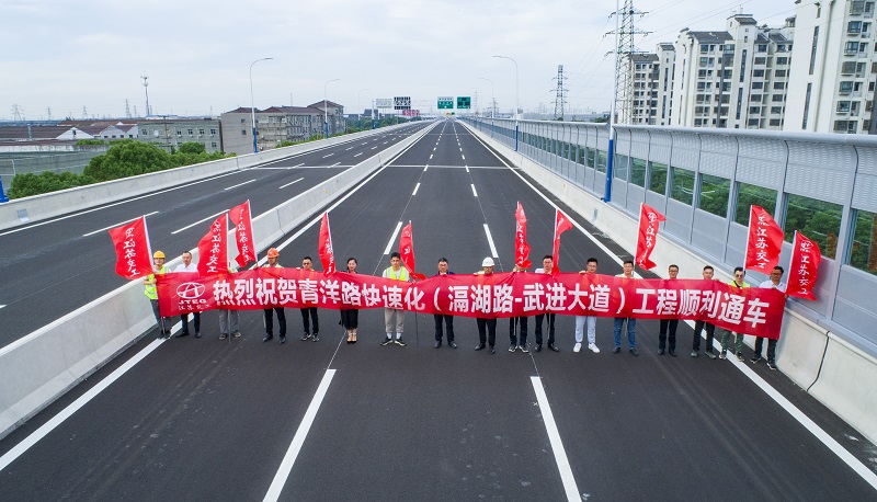 为保障通车目标实现,6月24日,在常州市武进区交通局和武进区公路事业发展中心领导的带领下,各参建单位陪同验收组专家对青洋路快速化工程项目进行了专业、细致的检查验收,为项目如期通车做好了充足的准备。6月27日,项目部管理人员全员参与安全值守和路面清扫,拆除了各路口封闭设施。今天早上7点18分,在武进区交通局领导凌光旭和武进区公路发展中心领导毛娟的带领下,高架桥起点处车辆有序通过。