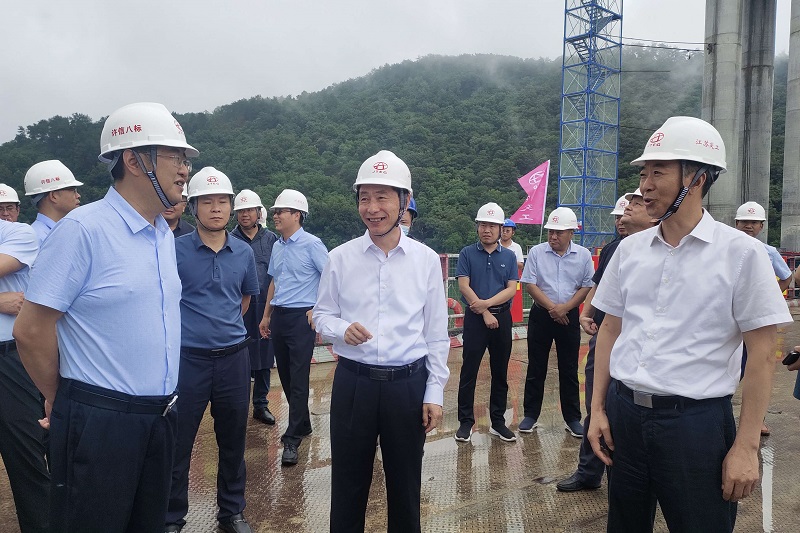 7月28日,河南省交通运输厅副厅长宋华东一行在集团总裁王纪源的陪同下,来到集团公司许信8标项目,对全线项目建设情况进行检查调研,并在许信8标项目部召开了许信高速公路5-9合同段年内建成通车推进会。