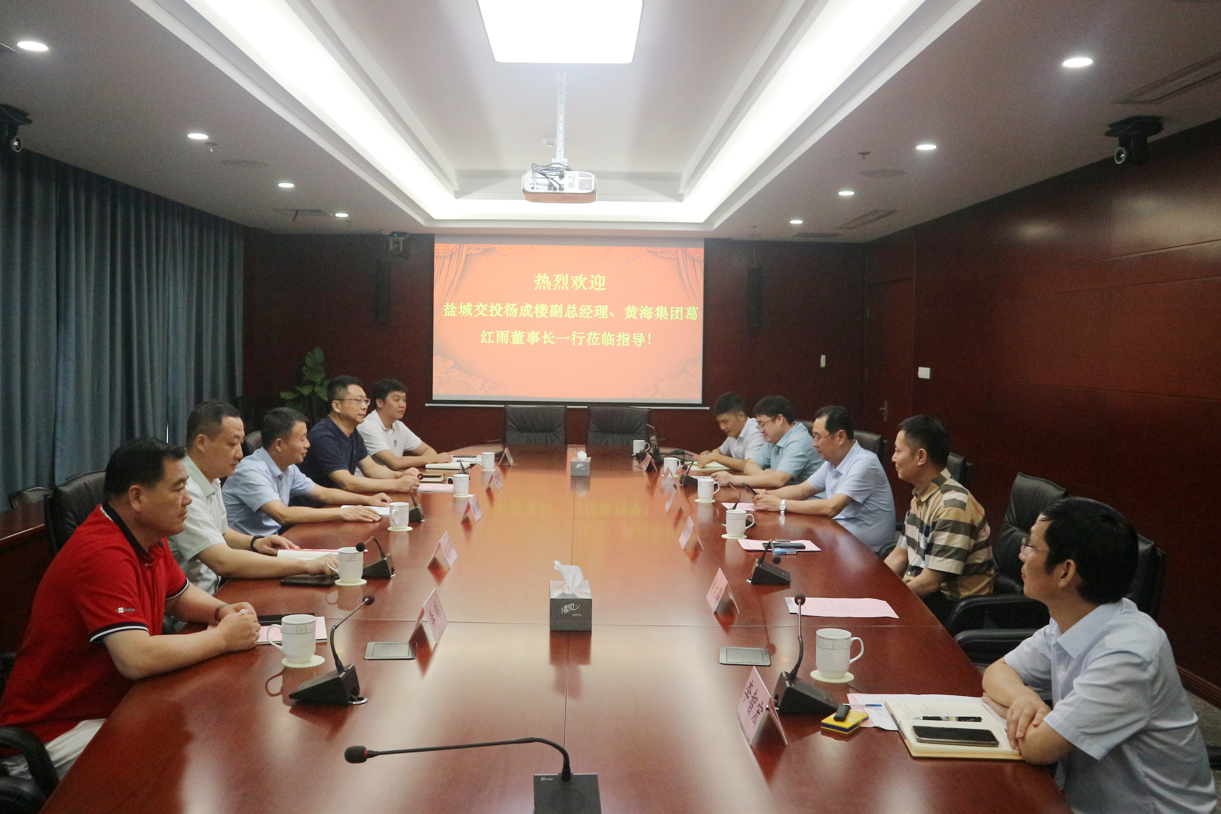 8月3日,盐城市交通投资建设控股集团有限公司副总经理杨成楼,江苏黄海交通产业集团有限公司董事长、总经理葛红雨一行来访集团公司,集团总裁王纪源热情接待。双方就加强业务交流,推动供应链贸易合作进行深入洽谈。