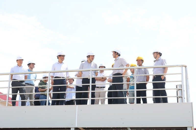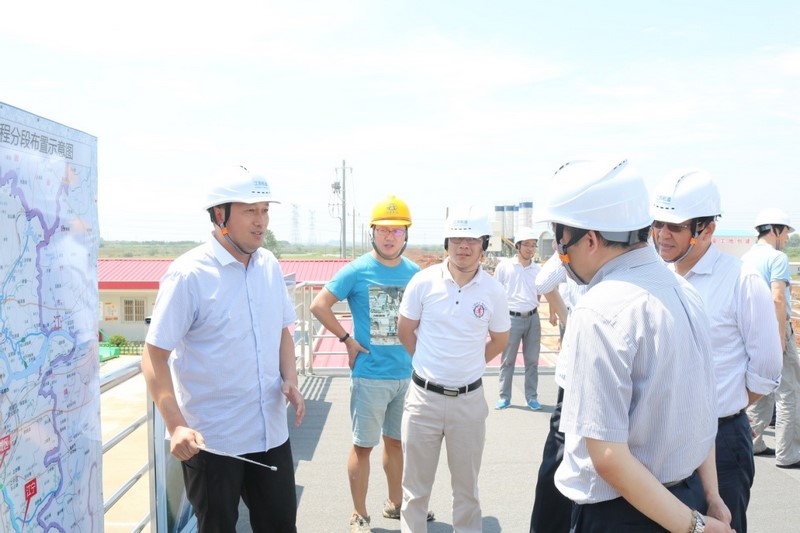 7月5日上午11点,江苏省交通运输厅厅党组成员、省交通工程建设局局长蒋振雄带领省交建局、省地方海事局、省航道局、南京交通运输局有关人员莅临洪蓝船闸土建项目参观考察,集团公司董事长张晓宇、海外分公司党总支书记王纪元、指挥部指挥长陈龙海、总监王玉波、以及洪蓝船闸指挥部、监理部、项目部一行人陪同检查。