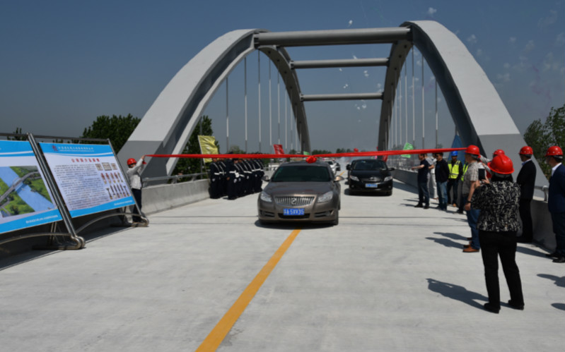新龙苴大桥采用双向二车道设计,桥面宽约10米,主桥采用计算跨径为62米下承式钢筋混凝土系杆拱桥,引桥采用20米先张法预应力空心板梁及20米现浇钢筋混凝土箱梁,桥梁总长470.22米。