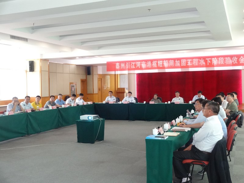 5月26日,泰州引江河高港枢纽船闸加固工程水下阶段顺利通过验收委员会验收。