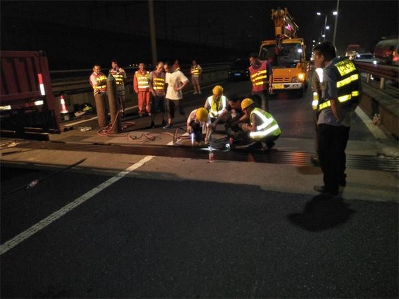平山公司利用夜间抢修杭甬高速公路钱塘江二桥伸缩缝