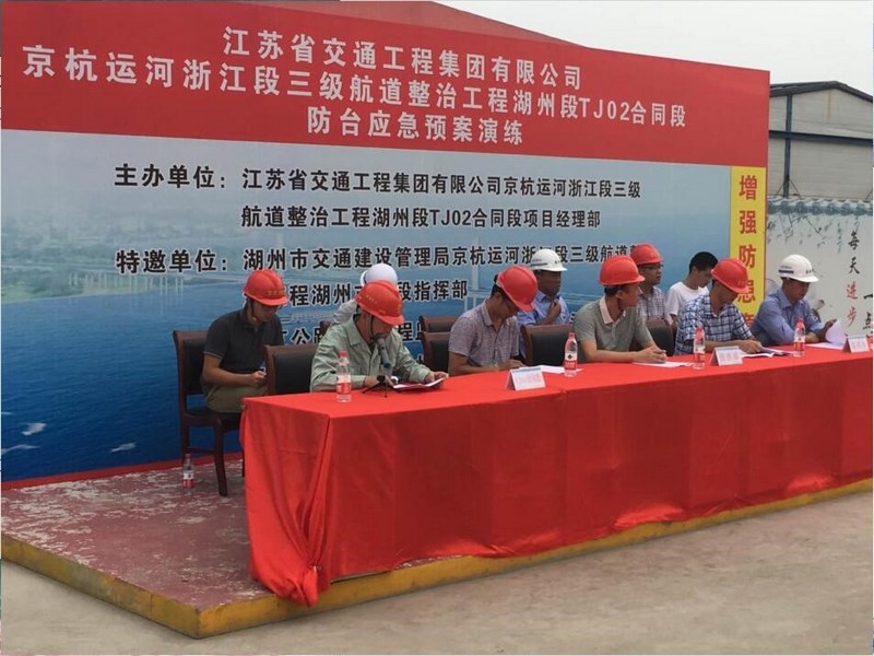 湖州属于湿润气候区,夏季湿热多暴雨及台风,受雨水和台风干扰较大。为使施工人员、各类大型设备、生活设施能够安全渡过雷暴、台风季节,确保施工安全、顺利进行,京杭运河TJ02标项目部根据自身特点,制定防台风的安全应急演练预案。
