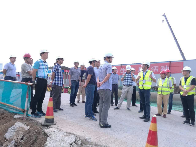 顾建波指挥长向考察团一行介绍了马汊河大桥的工程概况、项目总体规划思路、钢筋工厂化生产、数控设备使用,以及悬浇箱梁技术施工过程中的重难点控制。随后考察团现场参观了马汊河右幅辅道桥1#墩悬浇挂篮施工现场,并重点围绕悬浇箱梁钢筋工厂化生产、数控化作业、悬浇箱梁临时固结设置、挂篮悬浇施工工艺、施工过程质量控制和危险源防控等方面内容进行了深入交流。