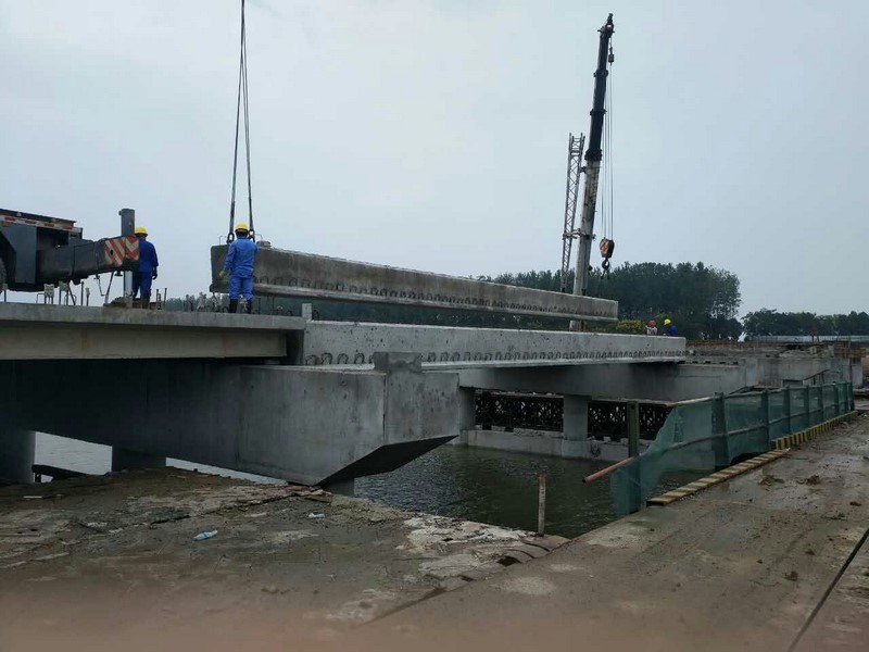 顺堤河板梁安装是该项目比较滞后的一个工程,中心接到板梁安装任务后,通过分析该节点的重要性,从梁场装梁、到板梁运输、再到现场安装进行安全、施工等优化配置,现场20米板梁安装条件较差,中心采用大吨位吊车,通过搭设水中安装平台,待车辆可以上桥,再把平台拆下,根据这样的情况组织驾驶班和两个起重班进行作业,期遇5天的大雨天气,现场起重班组通过对道路铺设防滑钢板等措施冒雨作业,通过大家的努力,9月15日提前完成板梁安装任务,为后续工序按期完成提供了基本重要条件,得到业主和洪泽项目部一致认可。( 周春华)