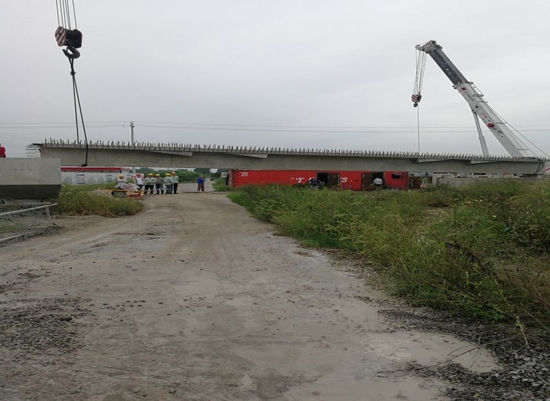 9月28日,京杭运河浙江段三级航道整治工程TJ2标九里桥首片T梁稳稳落在第2跨盖梁上,此次架设成功标志着该项目TJ02标梁板安装作业全面展开,整体施工向更重要的节点工期迈进。