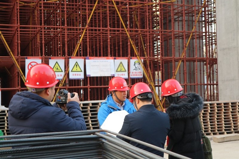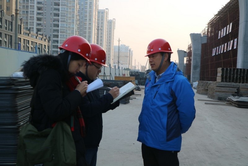 12月6日下午,淮安日报、淮海晚报、商报新闻媒体记者,在淮安市市区快速路和高铁枢纽工程建设指挥部综合协调办公室相关人员的陪同下,走进淮安市内环高架建设现场采访报道,在江苏交工5标施工现场,项目常务副经理吴春勇接受媒体记者采访。