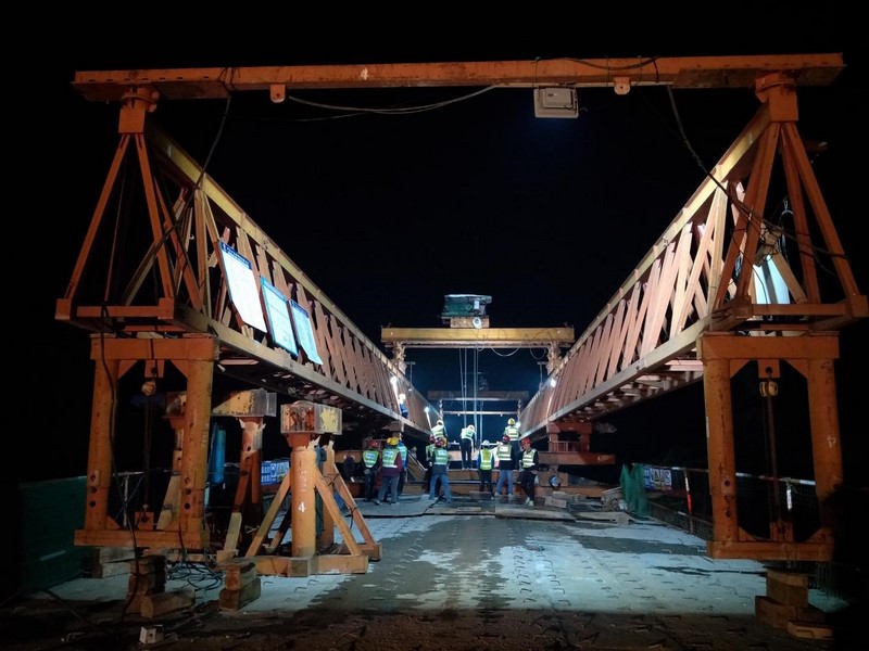 自12月4日起,架梁机跨既有线区域铁路施工正式开始,项目部架梁队施工人员对架桥机进行全面检修保养,项目经理张正伟全程进行盯控、现场施工人员各就各位、各司其职,实现无缝对接,克服了大风、下雨、设备故障等不利因素,于12月7日顺利完成跨既有线区域施工作业。潭水连接线K6+154公铁立交桥预计12月11日完成全部架设任务,为2017年12月28日云湛高速公路顺利通车奠定坚实的基础。(张宁)
