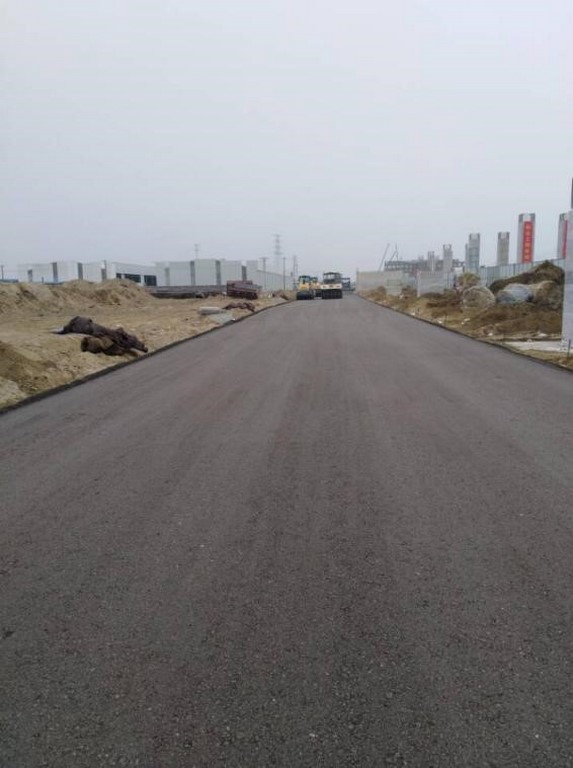 本次摊铺的桩号为FDK4+580-FDK5+350,两侧总长度为1540m。两台水稳摊铺机进行梯队摊铺,确保全断面一次性施工完毕。振动压路机紧随摊铺机进行水稳碾压密实,最后光轮压路机结合胶轮压路机进行表面整平、收面。水稳摊铺施工完毕后,及时覆盖土工布,进行洒水养护工作。