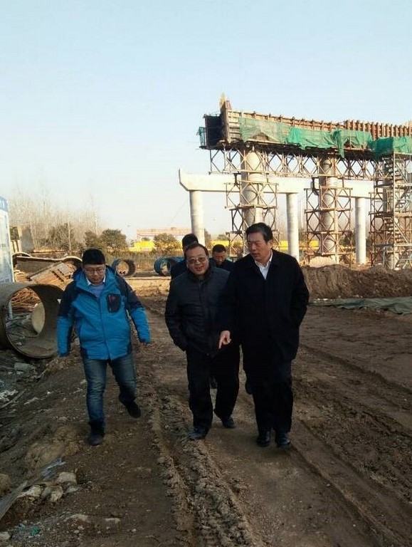 1月11日下午,淮安市委常委、开发区党工委书记唐道伦在住建局负责人的陪同下,冒着严寒视察了深圳东路工程项目。