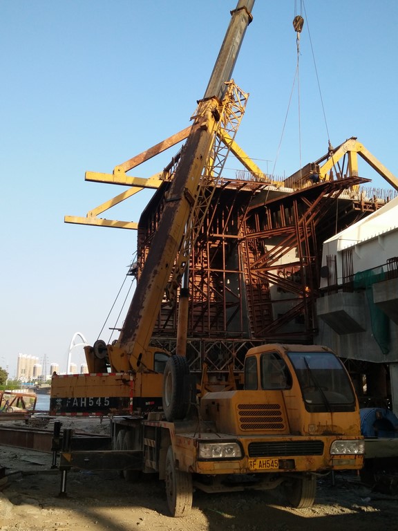 3月28日,五一大桥左幅15#墩0#块在经过7天湿养护后,强度经试验室确定合格后准备拆模张拉。