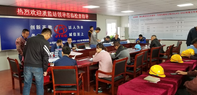 4月24日上午,泰州市交通局质监站到站前路2标项目部开展施工质量、安全大检查工作,项目常务副经理,工程科、试验室等相关负责人陪同检查。