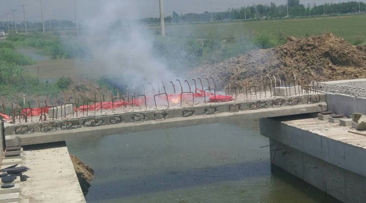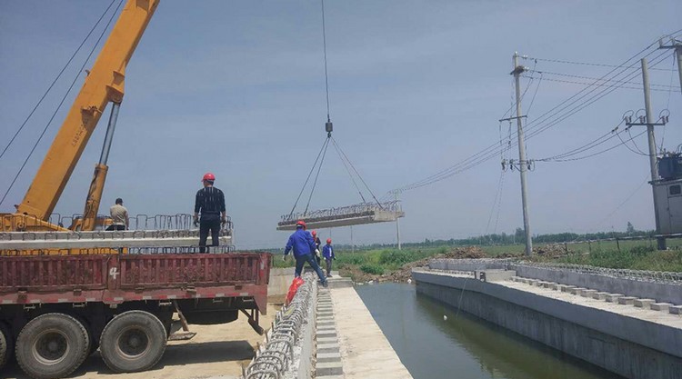 5月4日,在喜庆的鞭炮声中,348省道洪泽SG3标第一座小桥:K47+486.681小桥首件6m板梁安装成功。