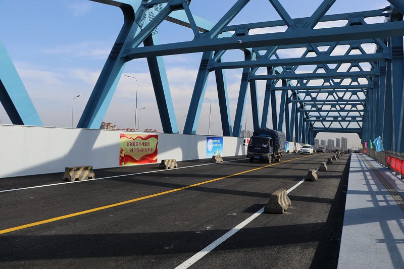 江陵路快速化改造一期工程是苏州市吴江区北部的重点工程,由集团公司负责SG02标段的施工任务。该标段起自中山北路,横跨京杭运河,终于运东大道,沿途交通流量大,障碍物较多,施工难度高。面对困难,项目部精心策划、科学组织,根据现场拆迁进度,不断调整导改方案,优化施工队伍,最终顺利完成南辅道通车这一节点目标。作为江陵路快速化改造一期工程跨越京杭运河段的第一座钢桁架桥梁,南辅道桥全长120米,桥面宽度15.8米,为双向两车道。通车前,南辅道桥上的交通标识、标线全部设置完毕,并安装了照明灯带、警示围栏等交通安全设施。吴江区交通工程建设指挥部、交通工程质量监督站委托检测单位对南辅道桥进行桥梁动静载试验,对桥梁进行了全面“体检”。经过近6个小时的荷载试验检测,桥梁承载能力及结构总体受力性能满足设计要求,符合通车要求。