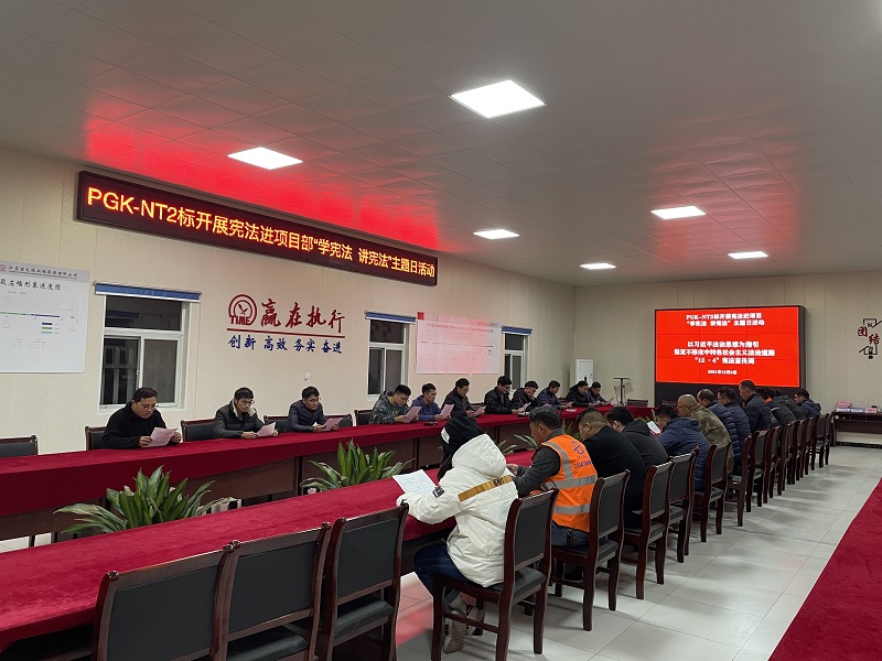 “你知道今年是我国第几个国家宪法日吗?”“你知道将‘习近平新时代中国特色社会主义思想’写入宪法是哪一年吗?”随着一个个小问题的抛出,12月4日,在国家宪法日当天,沪陕高速PGK-NT2标项目部会议室开展了一堂生动的法制普及课。