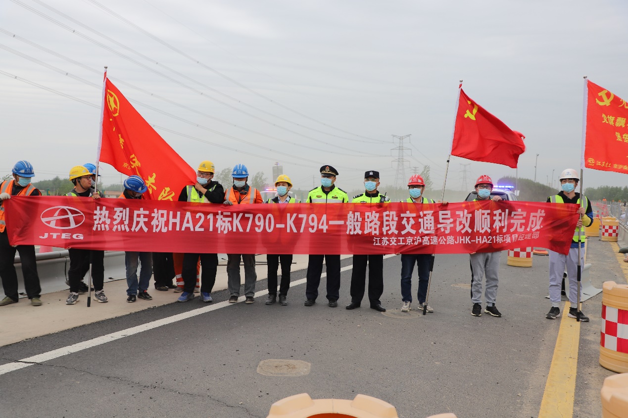 4月28日,在集团公司的高度关注下,在一路多方、京沪指挥部、总监办领导的大力支持下,经过JHK-HA21标全体人员的共同努力,一般路段双向交通转换顺利完成。上午10时完成沪京方向由第一车道转第四车道交通转换,下午3点完成京沪方向借道沪京方向第一车道交通转换。