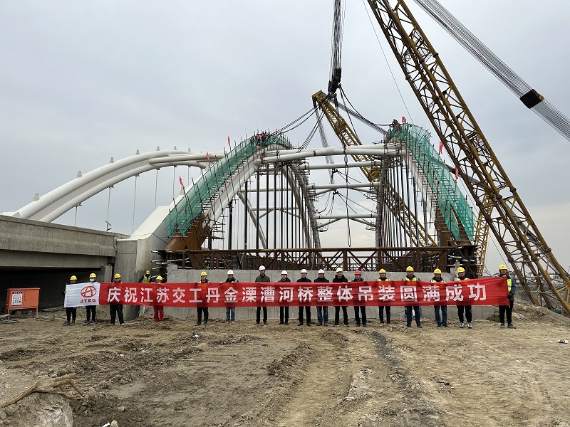 “成啦!成啦!”2月22日,随着右幅主桥拱肋移入预定位置,由集团公司承建的丹金溧漕河丹阳段新建312国道桥右幅主拱吊装施工完成,欢呼声庆贺声响彻现场。