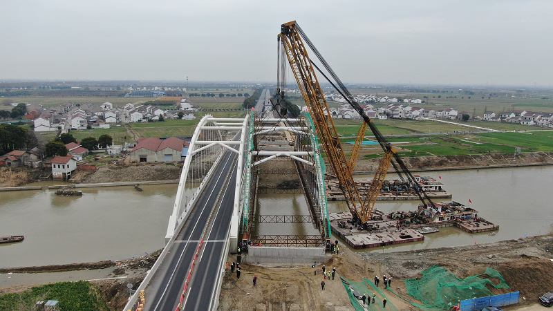丹金溧漕河丹阳段新建312国道桥右幅主桥吊装成功