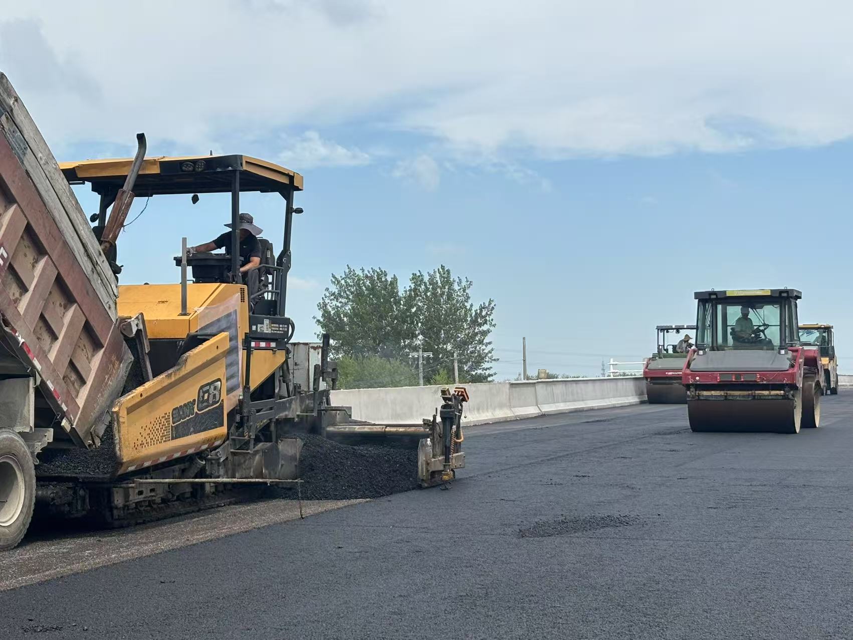 8月4日,在宿连航道二期桥梁1标工程现场——随着最后一车滚烫的沥青混合料在压路机的精确碾压下平整成型,205国道跨航道桥左幅主桥及接线沥青路面摊铺工作宣告圆满完成。这一关键节点的顺利攻克,标志着该桥左幅主体工程基本结束,为项目通车奠定了坚实基础,也向着宿连航道全线贯通的目标迈出了决定性一步。