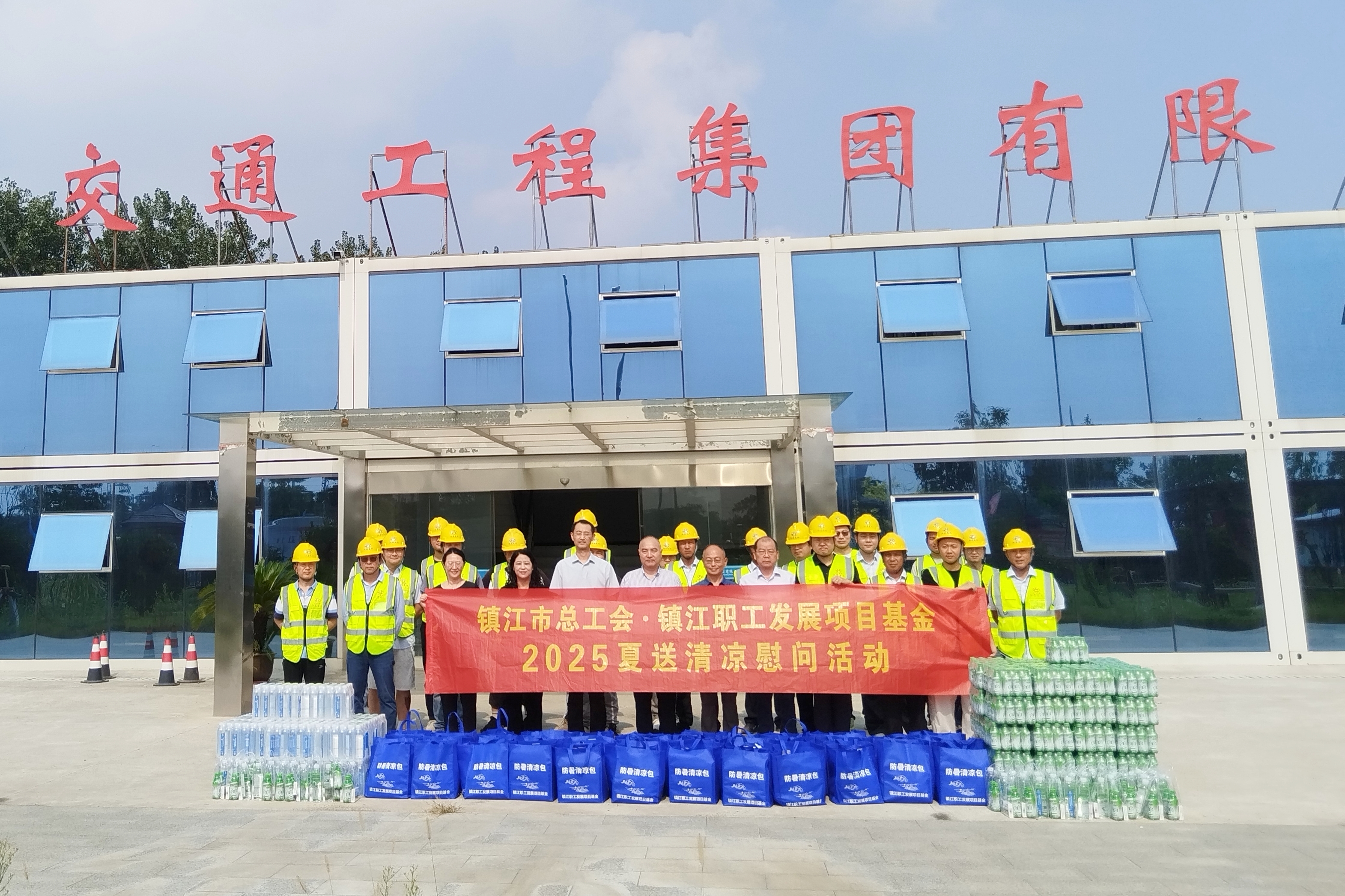 9月4日,镇江市总工会党组成员、三级调研员、职工发展项目基金主任薛国平带队,在集团公司党委副书记王春华、工会副主席张峰等人陪同下,深入省水运重点工程——谏壁一线船闸扩容改造项目施工现场,开展“2025夏送清凉”慰问活动,为顶烈日、战高温、抢工期的建设者们送去矿泉水、清凉饮料、防暑药品等慰问品,以及“娘家人”的诚挚关怀。