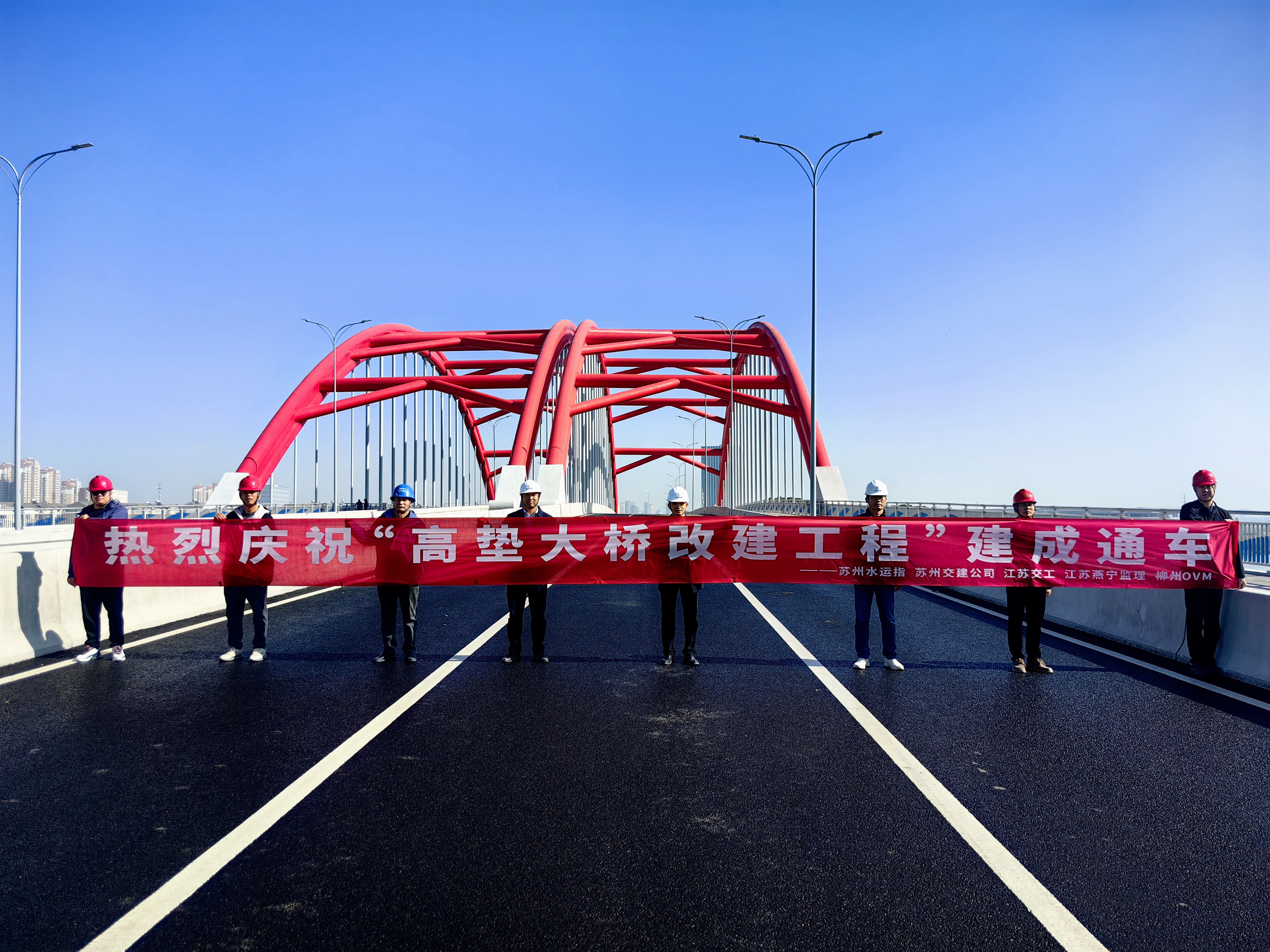 全长446.76米,宽39.5米的高垫大桥宣告建成通车,苏州吴中区与工业园区再添新纽带。作为区域交通网络的关键节点,原桥因建成年代较早,存在通航净空不足及结构安全隐患,被纳入苏申外港线(江苏段)航道整治工程进行改建。新建高垫大桥,按三级航道标准设计,大幅提升通航净空,可满足更大吨位船舶安全通行。同时,新桥在路面宽度、荷载等级及安全设施等方面实现全面升级,显著改善两岸陆路交通条件,有力推动了水陆运输协同发展。自开工建设至今,八百多个日夜的奋战,见证了项目建设团队攻坚克难的拼搏历程。面对跨径120米的钢管砼系杆拱这一技术高地,建设者迎难而上,在航道上方的高空作业中精准把控每一道工序。盛夏时节,施工人员在40度的高温中坚守岗位,确保焊接质量万无一失;寒冬腊月,项目部灯火通明,技术人员彻夜研究施工方案,优化吊装工艺。在工期最紧张的关键阶段,项目团队日夜兼程,采用BIM技术反复模拟,创新施工工艺,在确保安全质量的前提下全力推进工程进度,最终圆满实现了各项建设目标。它的建成,彻底消除了区域“断头路”瓶颈,完善了路网结构,为促进市域一体化发展注入了崭新动能。